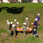 Die Erste Gruppe nahm die Personenrettung mittels Teleskopmastbühne der Altmünster in Angriff. Mit Hilfe einer Schleifkorbtrage und einer Winde konnte unser Übungsdummy erfolgreich gerettet und den Anwesenden Sanitätern des Roten Kreuzes Gmunden zur weiteren Versorgung übergeben werden.